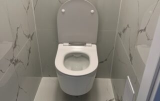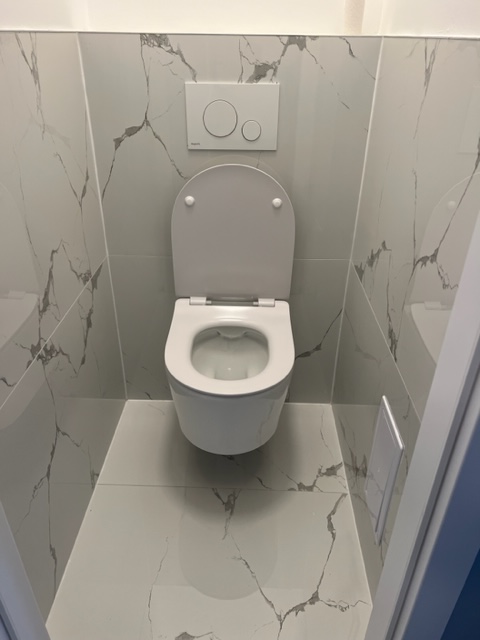 – WC – závesný podomietkový systém s keramickou misou a dizajnovým tlačítkom.